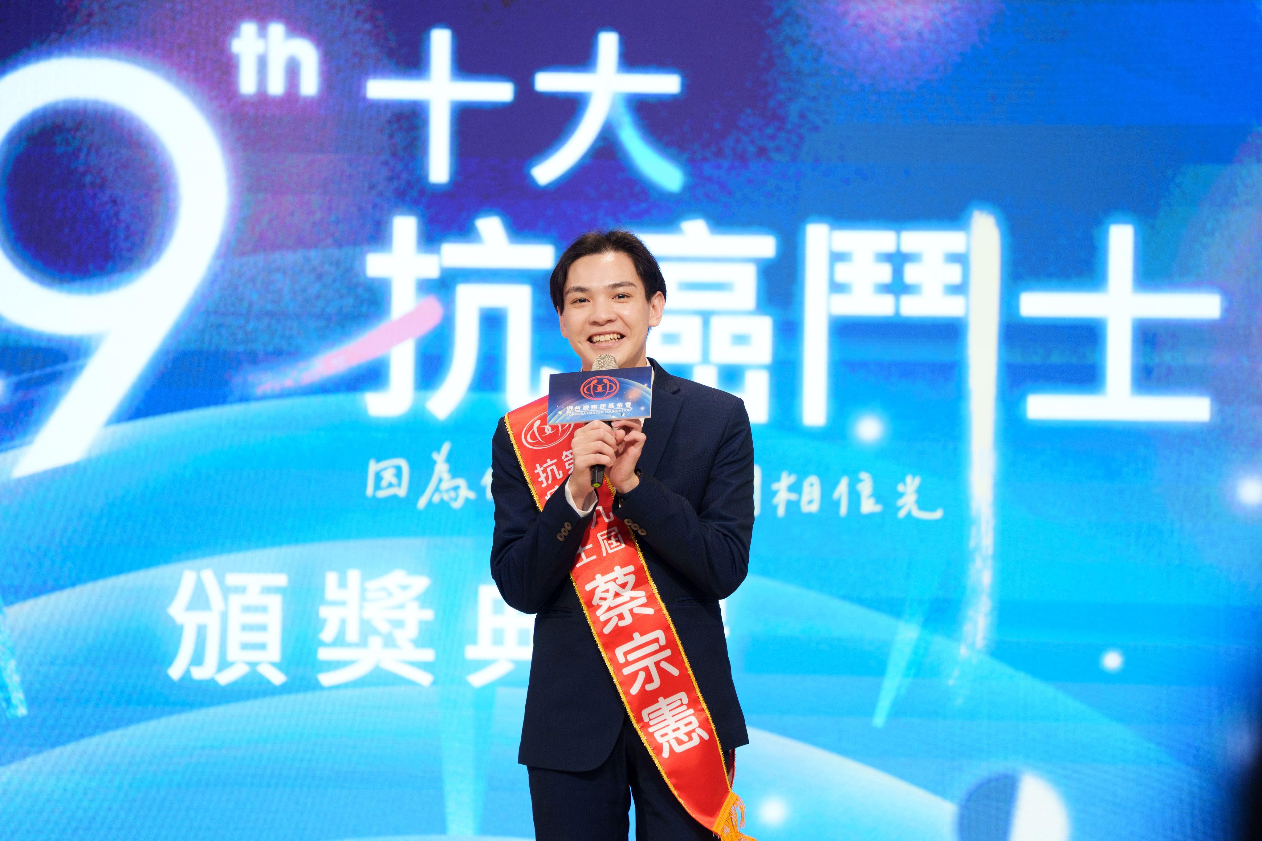 骨髓移植成功周年,我以主持人身分站上畢業典禮舞台,我也榮獲「全國大專優秀青年」獎,雖因術前檢查無法親自領獎,但親手從主治醫師手中接過「優秀青年」獎狀,是我抗癌路上最珍貴的鼓勵與肯定。