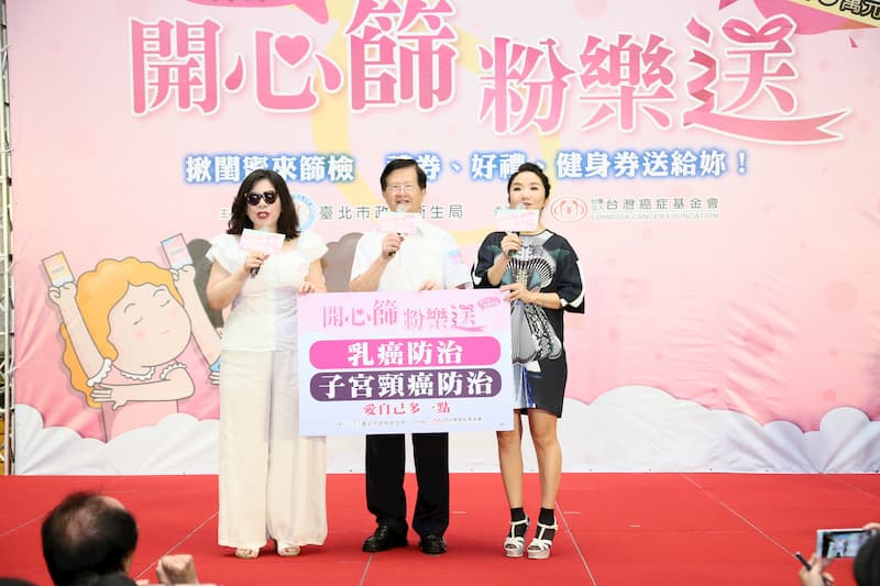 根據衛生福利部公布最新107年十大死因,惡性腫瘤為臺北市十大死因首位,又以乳癌、子宮頸癌最威脅女性健康,臺北市政府衛生局與財團法人臺灣癌症基金會共同辦理「開心篩 粉樂送」婦癌篩檢活動,邀請知名主持人陶晶瑩揪閨蜜─資深媒體人陳文茜,一起呼籲女性朋友「愛自己,多一點」。
