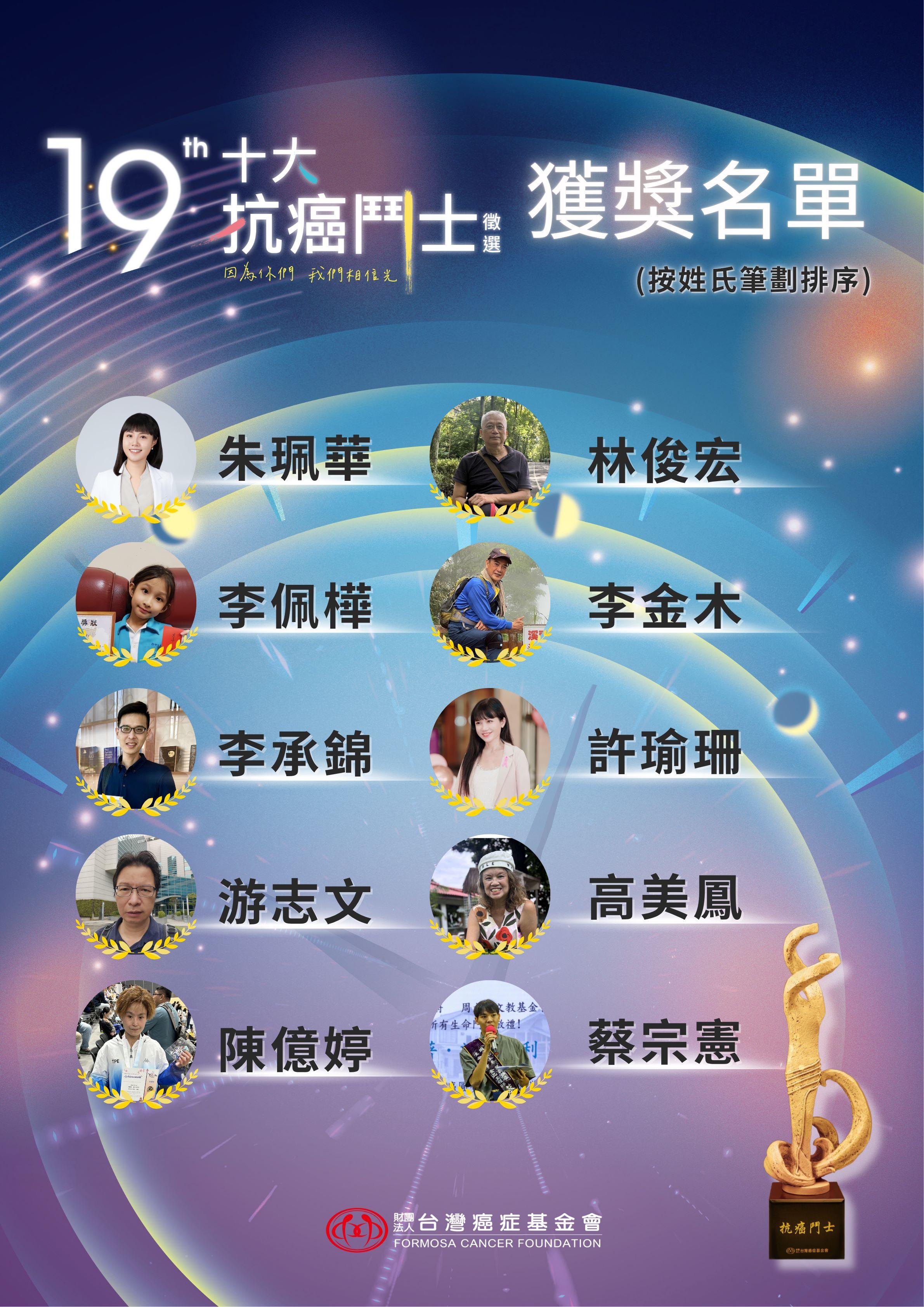 ~經過以上九位專業人士評選後,選出今年的抗癌鬥士!~