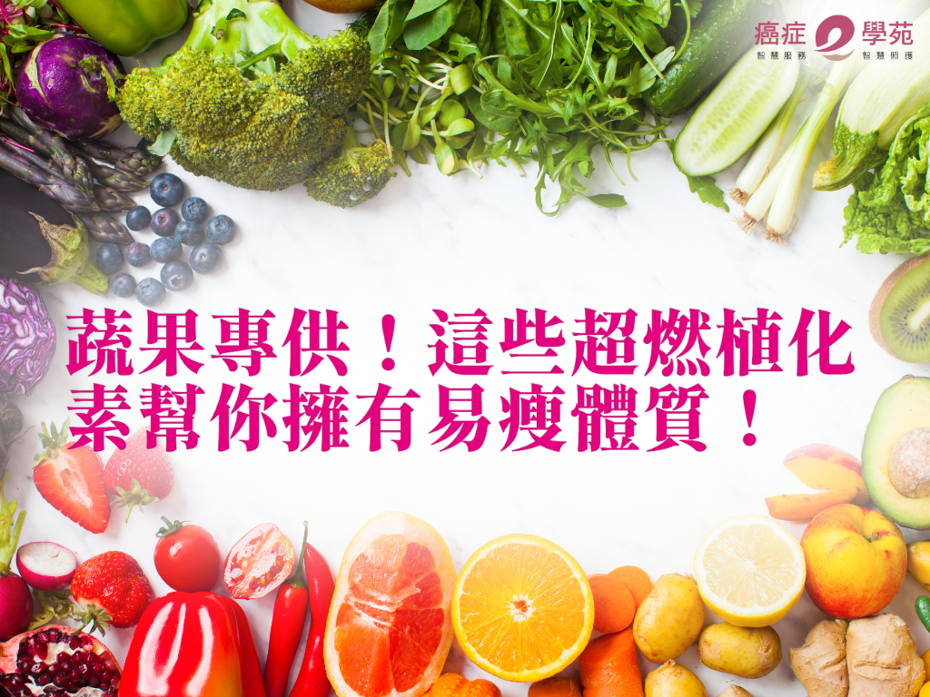 除上述的植化素外,許多天然蔬果也蘊含豐富的植化素,能夠幫助調節代謝、減少體脂肪囤積,並促進整體健康。值得注意的是,肥胖與癌症、心血管疾病、糖尿病、阿茲海默症等慢性疾病息息相關,而許多研究已證實飲食中植化素攝取對預防與改善慢性疾病也有顯著益處。這也是為什麼營養專家總是鼓勵要多吃原型食物、多吃蔬果的原因!
