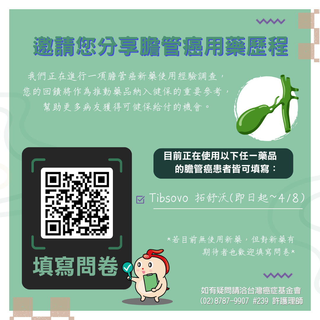 【問卷調查】特定癌別藥品使用經驗分享問卷_膽管癌