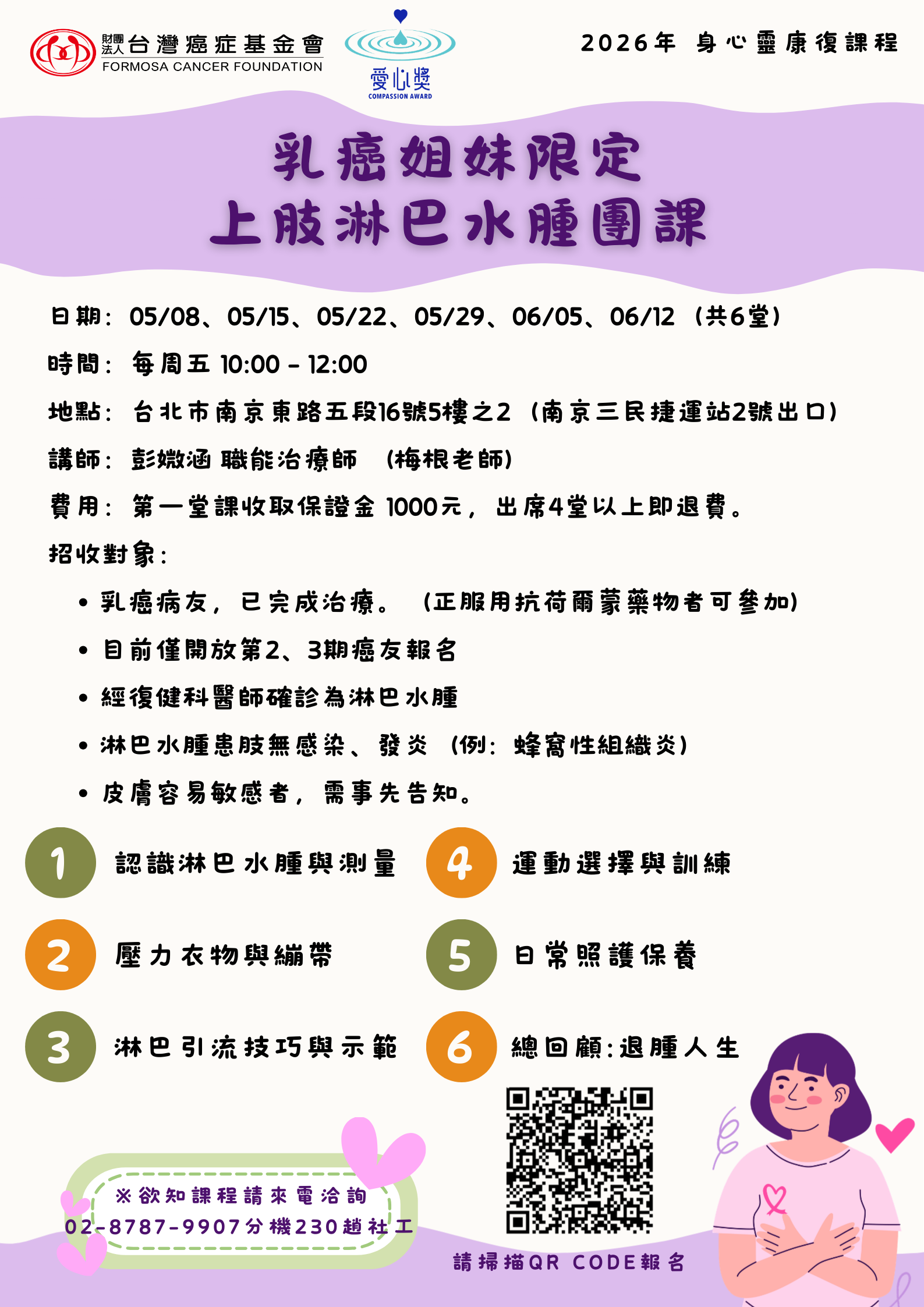 【2026 台北身心靈】乳癌姊妹限定上肢淋巴水腫團課