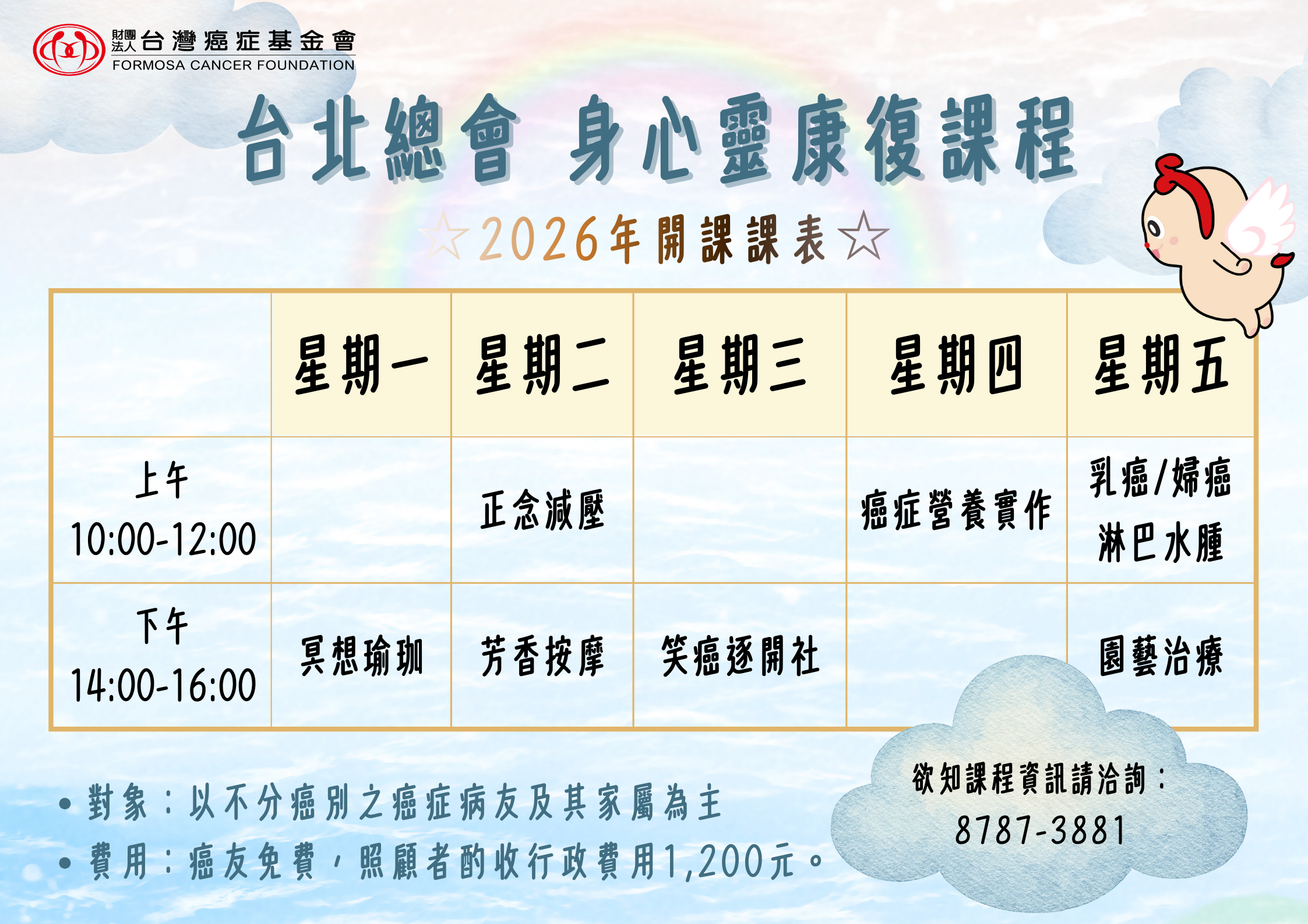 l  課程報名:www.canceraway.org.tw/癌友服務/身心靈康復課程/北部課程