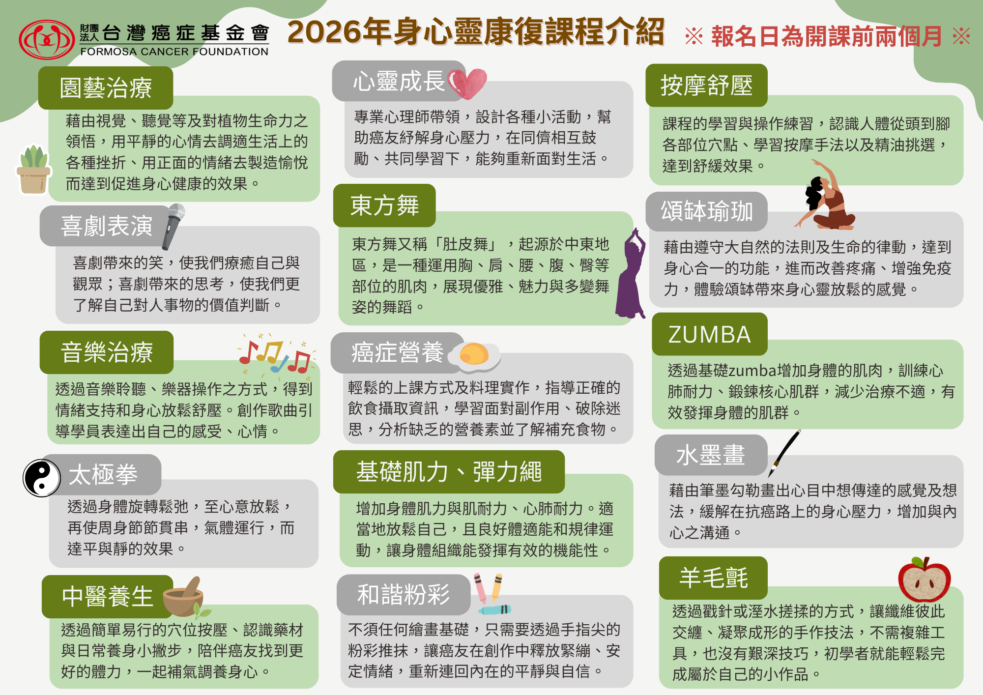 115年度台灣癌症基金會南部分會 【身心靈康復課程】總表